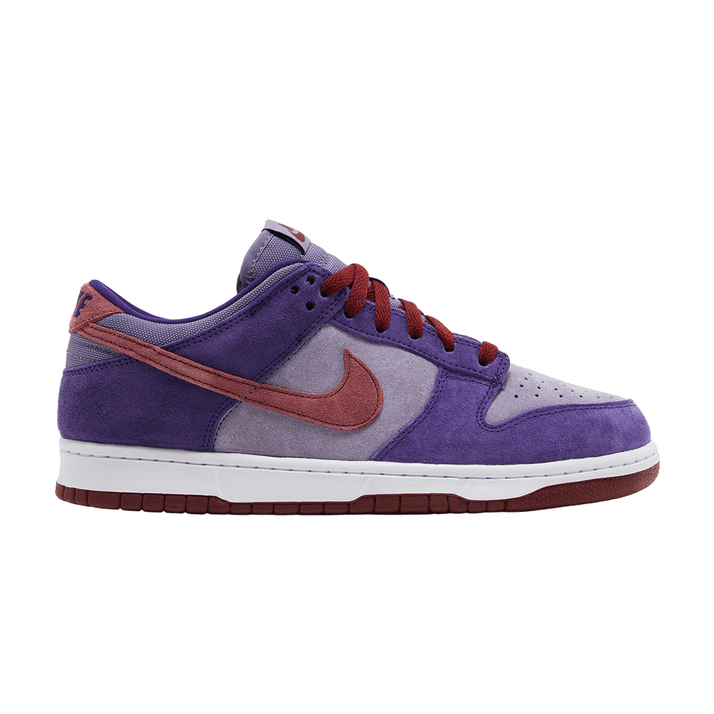 The 2024 edition of the Nike Dunk Low Retro Vol. 1 SP 'Plum' brings back one of the distinctive colorways of the CO.JP 'Ugly Duckling' pack from 2001. Like the original, the low-top carries an all-suede upper in two shades of violet. Dark crimson accents land on the laces, signature Swoosh and back tab, marked with embroidered Nike branding. Additional Nike branding hits appear on the woven tongue tag and sockliner. Anchoring the sneaker is a durable rubber cupsole.