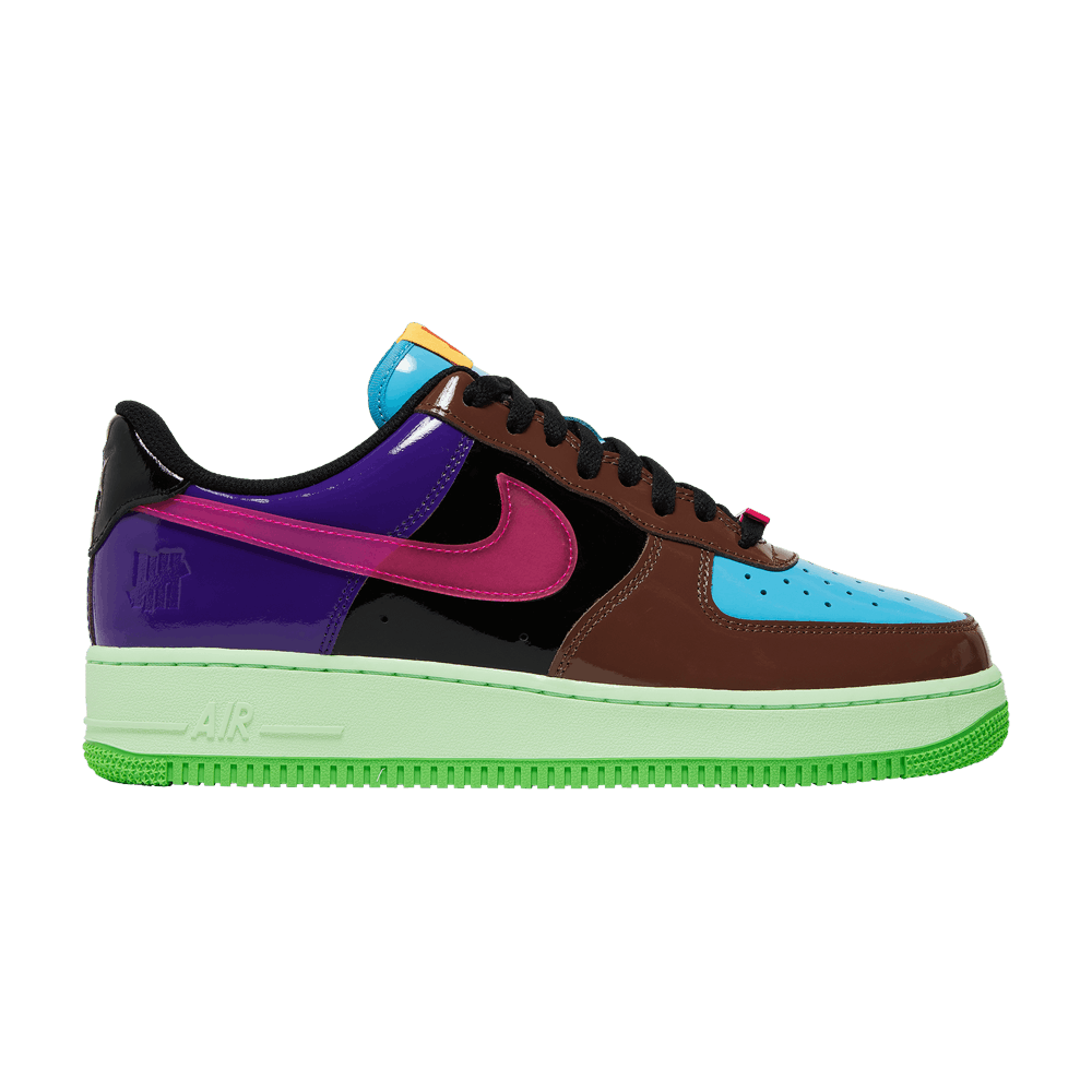 The Undefeated x Nike Air Force 1 Low ‘Pink Prime’ is taken from the AF1 Multi-Color Patent project, a collaborative series celebrating the 40th anniversary of the iconic silhouette. Taking cues from Undefeated’s Nike Dunk High NL from 2005, this pair features a paneled patent leather upper in a clashing mix of powder blue, brown, black and purple. Color-popped accents arrive via a translucent pink Swoosh, matching ‘UNDFTD’ lace dubrae, and a bright yellow tongue tag marked with Undefeated’s Five Strikes logo. The insignia is repeated on the lateral heel. Anchoring the sneaker is a durable rubber cupsole in a tonal green finish.